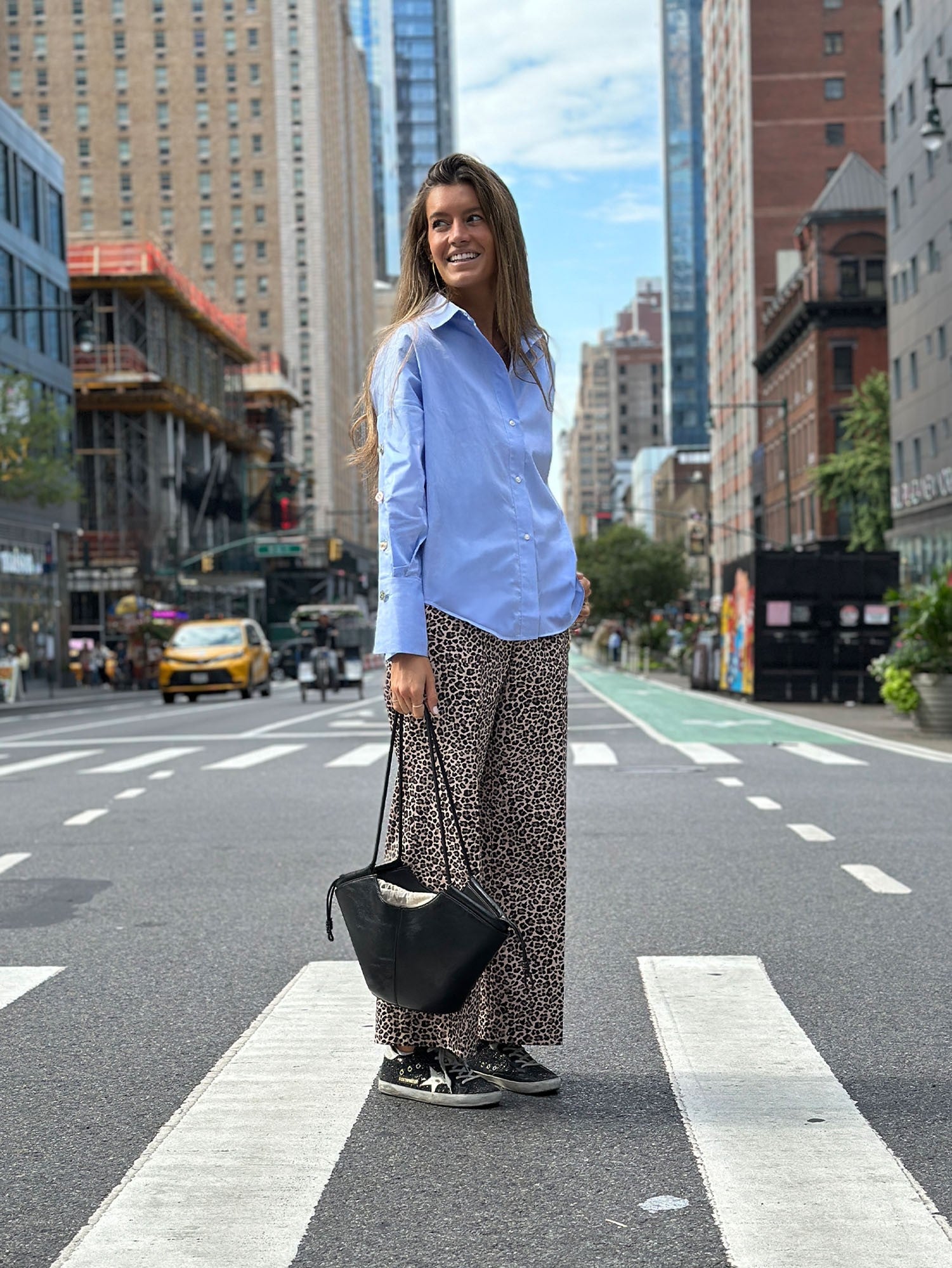 Make a bold statement with these eye-catching wide leg pants, featuring a fierce leopard print and luxe gold button detailing along the sides. Designed to combine comfort with high fashion, these pants offer a relaxed yet structured silhouette that flatters every step. The high-rise waist enhances your shape, while the flowy leg adds movement and drama. Whether you're dressing up for a night out or adding flair to your daytime look, these pants are guaranteed to turn heads.