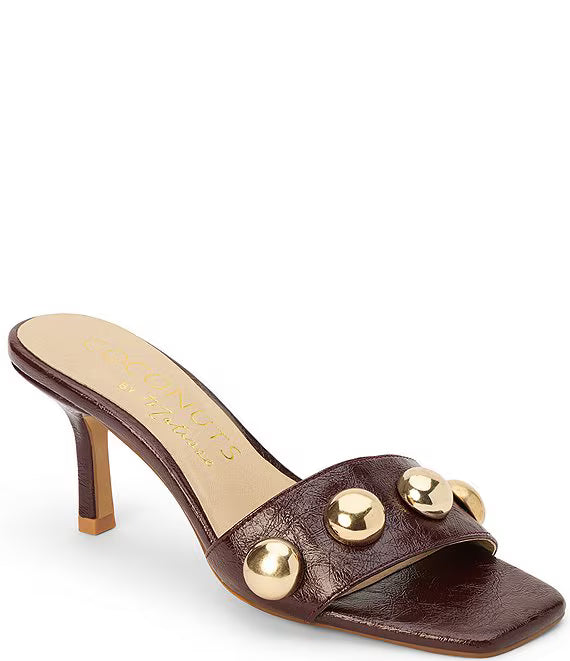 Step into chic sophistication with the Matisse Theo heel in rich Burgandy. This sleek mule features a modern square toe, slender heel, and statement gold dome accents for a touch of bold glamour. Crafted with a smooth, polished finish, it perfectly balances edge and elegance- ideal for dressing up denim, pairing with a cocktail dress, or elevating any nigh-out look.