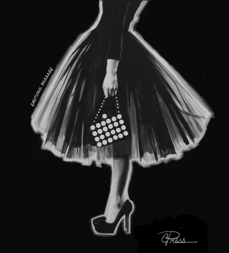 Playful, chic, and full of personality, the Cpress Studio Emotional Baggage Mushie Tee brings a stylish twist to graphic tees. Featuring a sketched fashion silhouette sporting a fabulous tulle skirt and mini bag, this soft tee adds a touch of runway humor to any outfit. Pair it with denim and a bold belt for an effortlessly cool look with a dash of attitude.