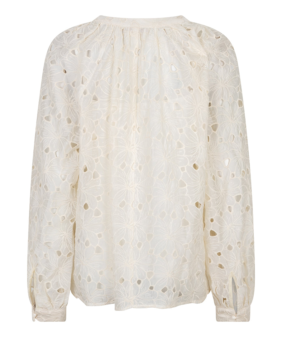 Softly feminine and effortlessly refined, this cream V-neck blouse features delicate floral embroidery for a romantic, elevated touch. The flattering neckline and lightweight feel make it perfect for both work and weekend styling. Pair it with tailored trousers for a polished look or denim for easy, everyday elegance.