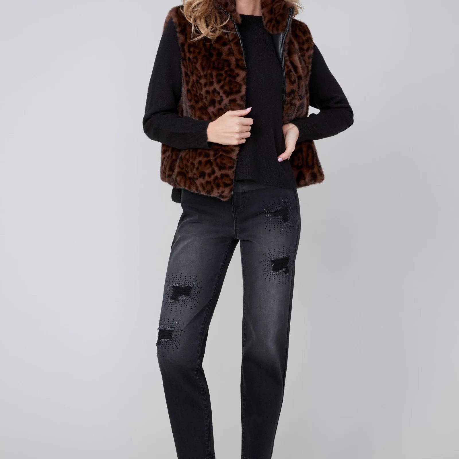 Add a fierce touch to your layering game with the Renuar Leopard Knit Vest. Designed for bold style and cozy comfort, this sleeveless piece features a chic animal print that brings personality to any outfit. Whether you're dressing up denim or adding edge to a classic blouse, this vest is your go-to for effortless flair. Leopard knit pattern for a wild yet refined look. Designed in Canada and crafted for the modern woman, this vest blends timeless print with contemporary ease. From casual days to statement nights, it’s a wardrobe must-have.